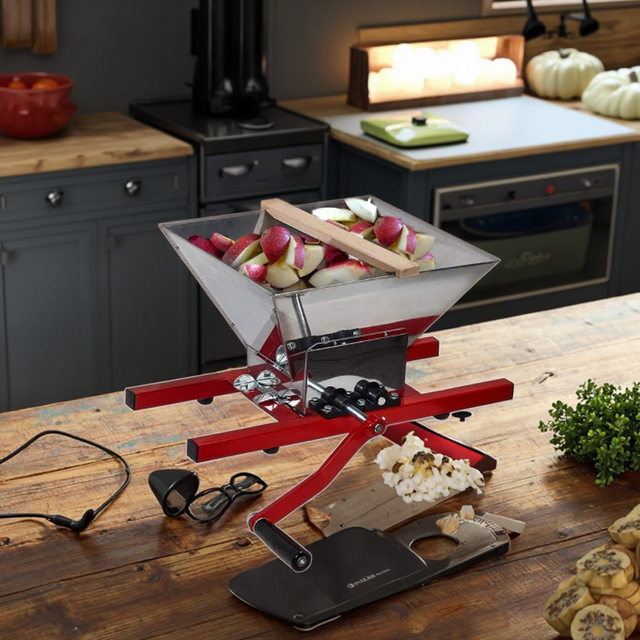 Trituradora de frutas de acero inoxidable de 7L con soporte, trituradora de uva y bayas de manzana, trituradora Manual de prensa, trituradora de frutas para sidra de vino